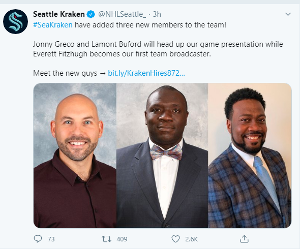 Greco told NHL.com he and new running mate Lamont Buford also plan to be out in the community: “We plan to listen to fans. There’s a big difference between listening to and hearing from fans. We want to learn about the city and Pacific Northwest. We will meet with other Seattle teams that have created amazing and lasting traditions. We plan to get out to study the culture and all the places that are touristy and not.”