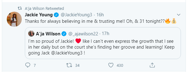 Fortunately, Laimbeer’s pre-game bad feeling didn’t come to fruition in the team’s win over the Liberty Sunday. Las Vegas overcame a sluggish start to best New York, 78-76, behind star A’ja Wilson’s 31 points. Wilson celebrated her 24th birthday Saturday, a day before her big game and win.