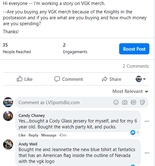 LVSportsBiz:  Has merchandise sales increased because of the VGK presence in the postseason?