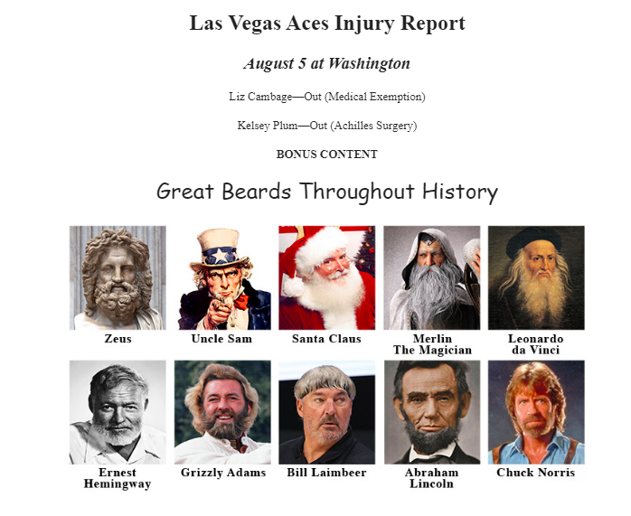 Imagine opening your email from the Las Vegas Aces and getting treated to this hirsute display.