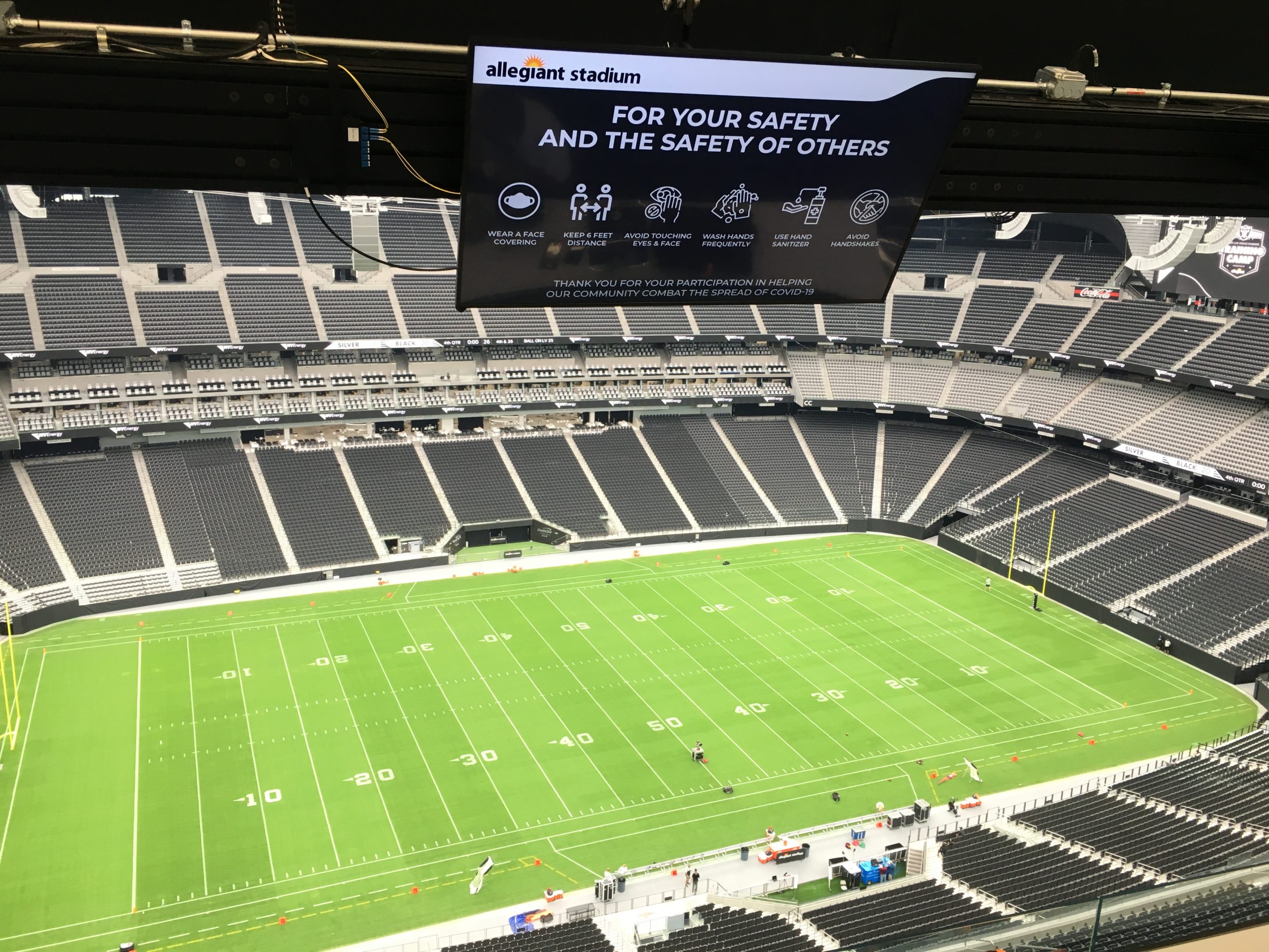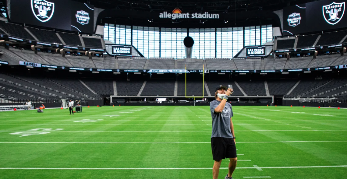 Said Gruden “I just want to say it was very exciting being it that stadium. We are really appreciative of what [Owner] Mark Davis, [President] Marc Badain and these guys went through to put us in a place like this. I just can’t wait to share it with the city of Vegas, sports fans, entertainment fans from around the world. This place is a one-of-a-kind joint. We just got to keep pounding this virus into the turf and open these doors so people can enjoy it like we did today. It’s a spectacular, out-of-sight place.”