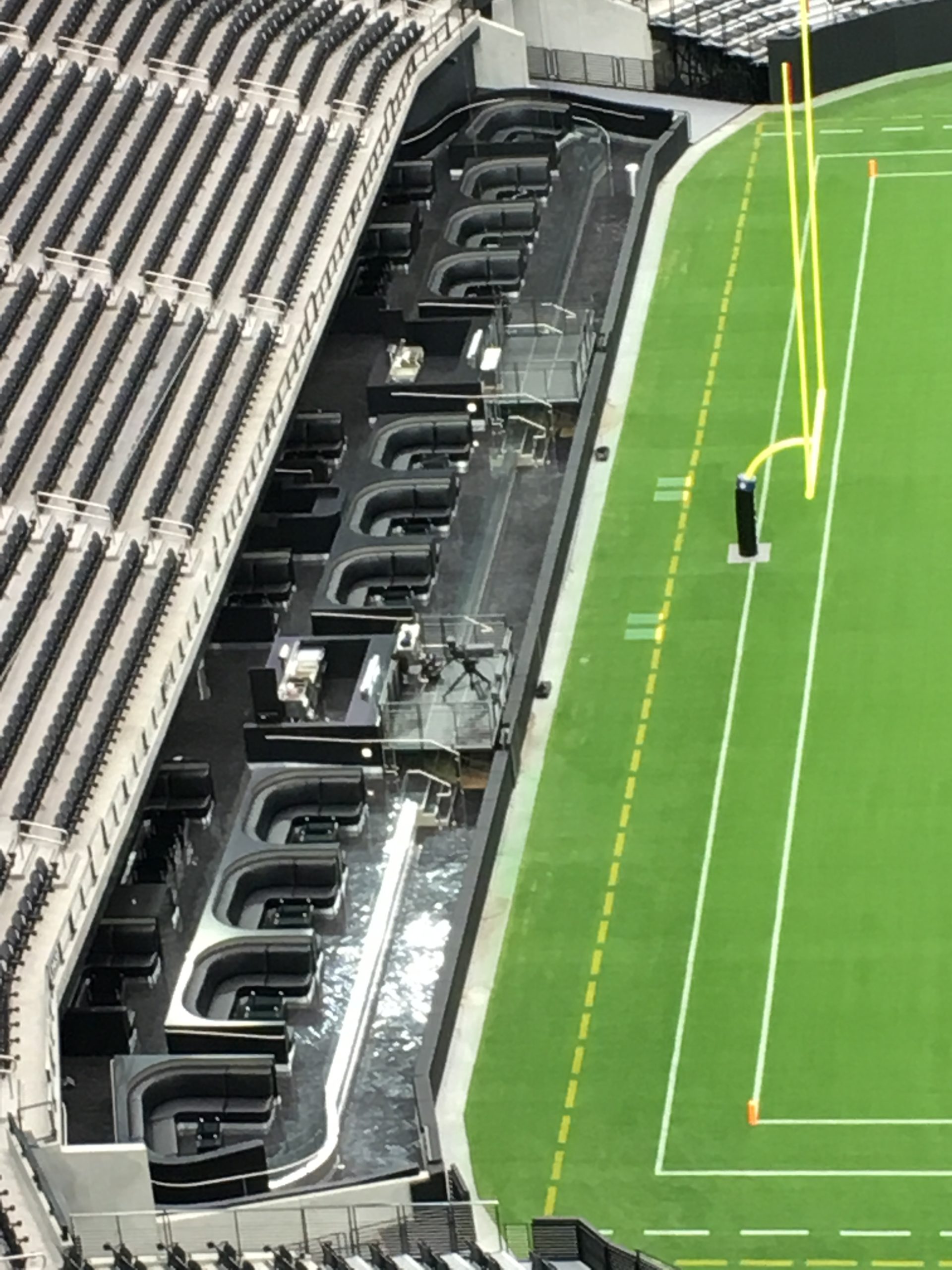 The field-level premium sitting area behind the end zone on the building’s north side will also be unused.