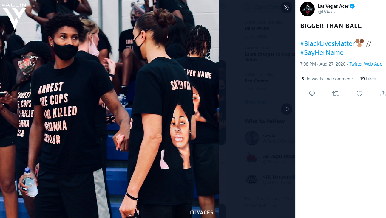 We understand that the tragedies involving Jacob Blake, George Floyd, Breonna Taylor and others require us to recognize this moment. We pledge to work to use our sport to influence positive change in society.