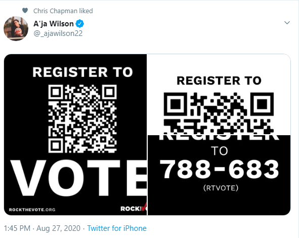 Aces star player A’ja Wilson is also urging fans to vote.