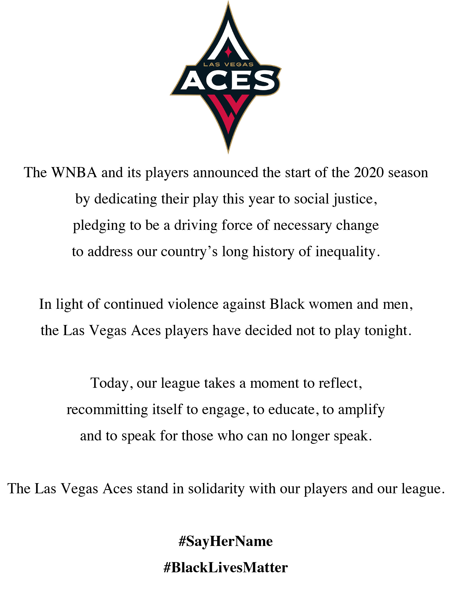 The Aces released this statement.