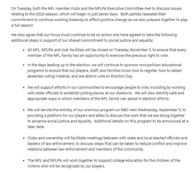 The NFL’s teams and the players union executive committee met this week and issued a statement on social issues. Read on: