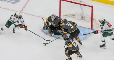 The Knights enjoyed a 12-4 edge in shots on goal in Game 3’s first period, but Dallas matched that with some hard hits, physical play and stopping the Knights at the blue line.
