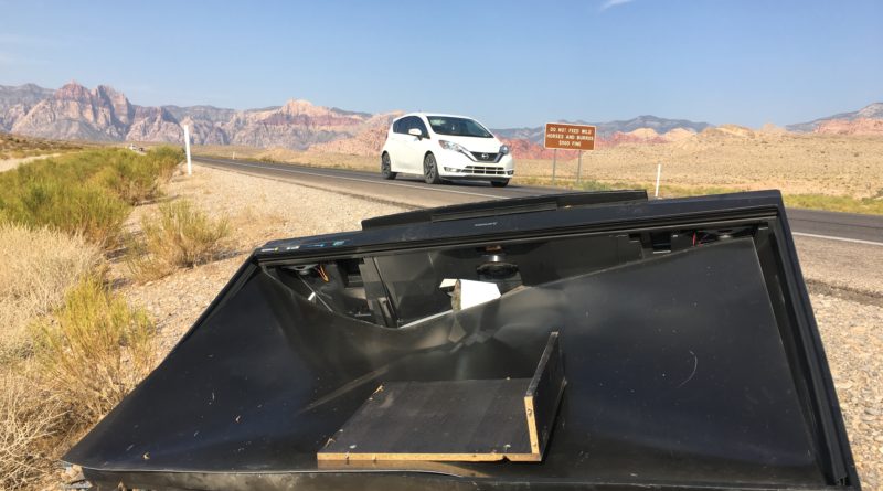 It stands as an ugly monument to the changing times of Red Rock Canyon — a giant busted TV screen sitting on the side of the road on Nevada 159 about a mile outside the suburban sprawl of Summerlin.