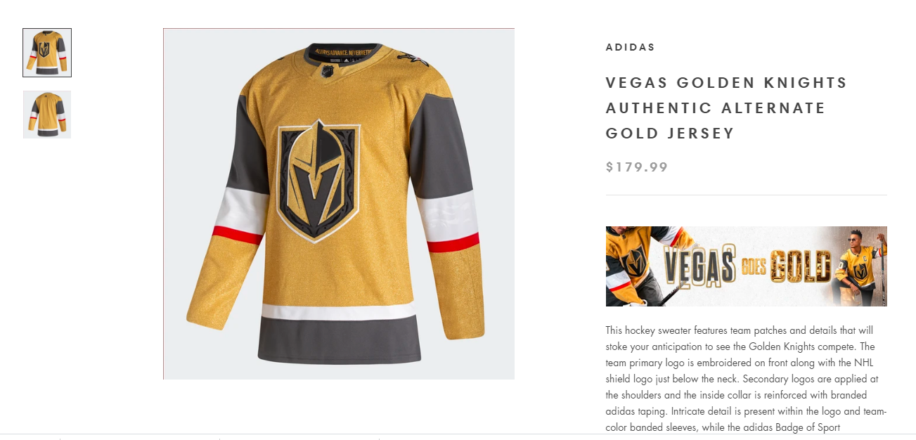 The third jersey, which will be part of the VGK player jersey rotation at home and away games, sells for $179.99, plus tax.