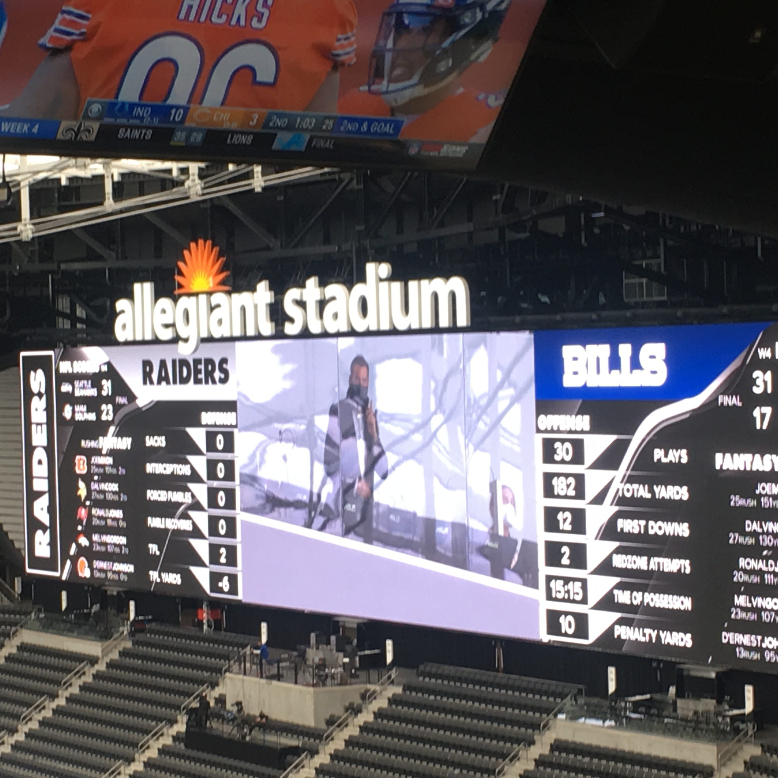 The Bills are 4-0, while the Raiders dropped their second game and stand at 2-2.