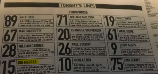 Under Gallant, Merrill even drew a rare game assignment as a forward in a Jan. 2, 2020 game between VGK and the Philadelphia Flyers. .