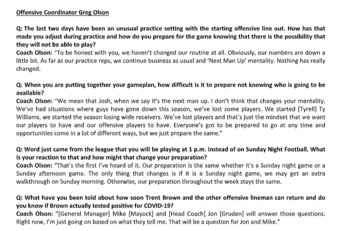 Here are offensive coordinator Greg Olson’s respones to questions about the COVID-19 impact on the offensive linemen: