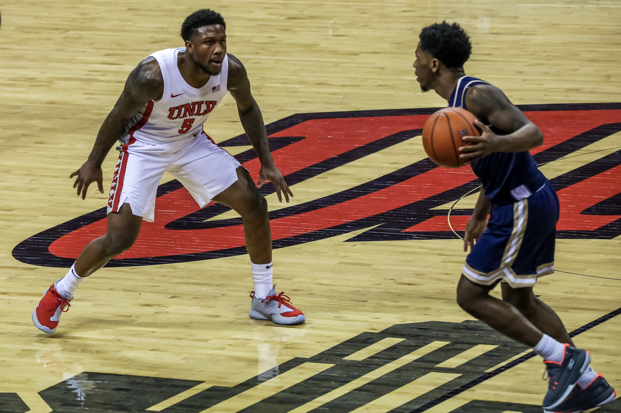 UNLV arena ops piped in fake crowd noise, which seemed bizarre and disorienting with no actual fans in the building. They staged the fiery, explosive firecracker show during Runnin’ Rebels player intros.