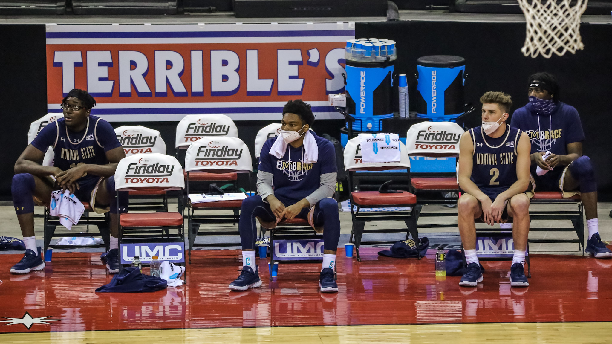 UNLV players who were not playing sat in seats that were spaced about three feet apart and were away from the court.