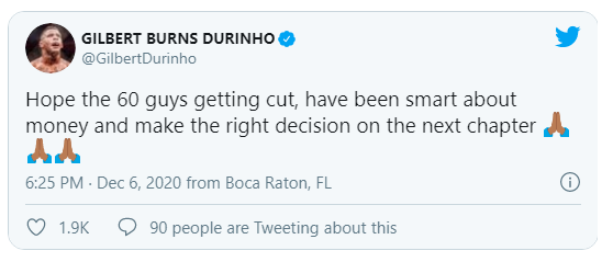 The current number one welterweight contender Gilbert Burns responded to White’s announcement on Twitter.