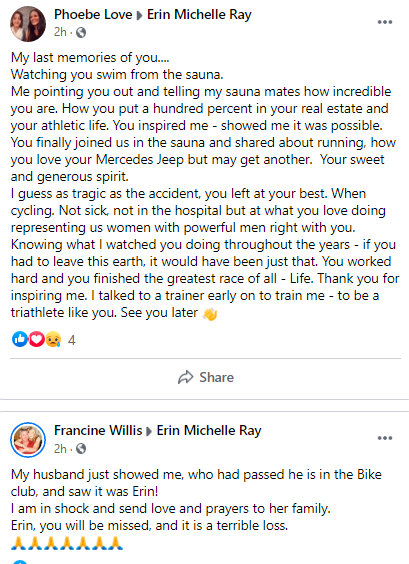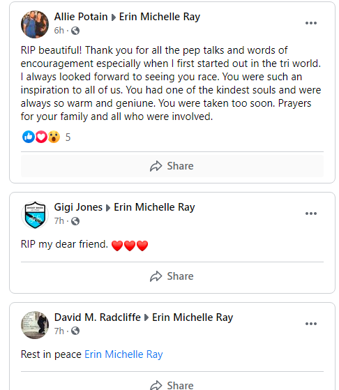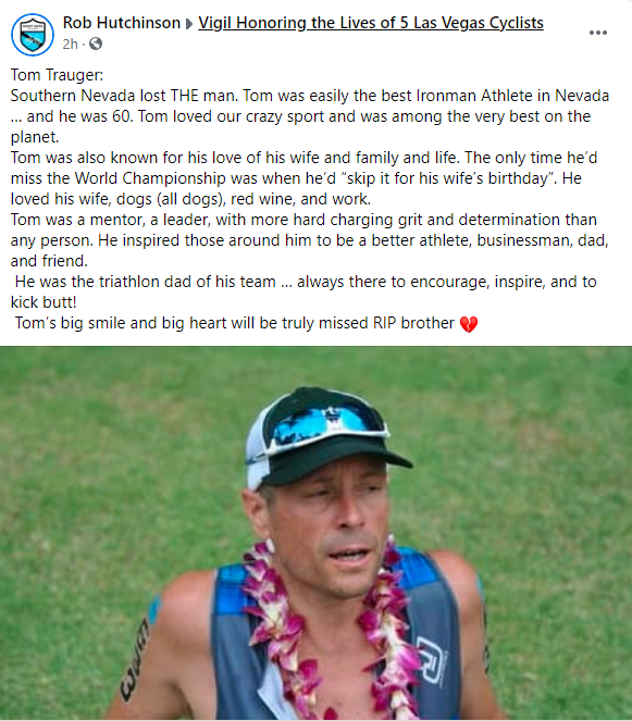 As of 6:30 a.m. Friday, 76 people shared heartbreaking thoughts on the FB page of Ray, a realtor in Las Vegas and triathlete. These are just some examples.