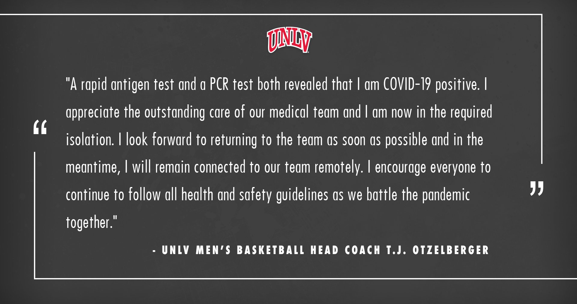 UNLV basketball coach T.J. Otzelberger told the public he is infected with the novel coronavirus Tuesday a day after someone in the Runnin’ Rebels program tested positive Monday, prompting Monday evening’s UNLV vs Pepperdine basketball game to be wiped out. Here’s the Otzelberger statement: