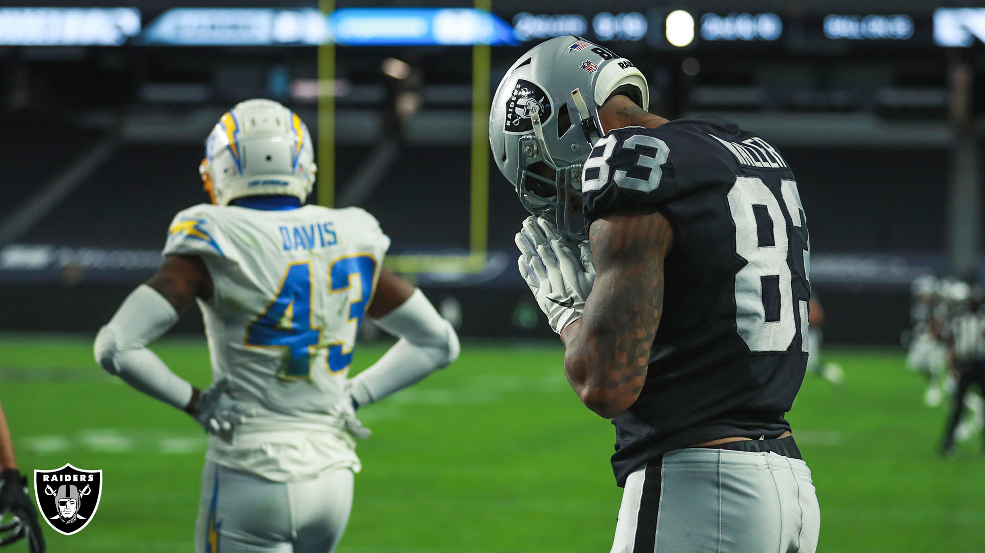 Late in the first half, Herbert took advantage of all that open space provided by the Raiders secondary. Herbert threw a dart to KJ Hill for 25 yards and then hit Tyron Johnson for a touchdown with a mere 19 seconds left in the first half.