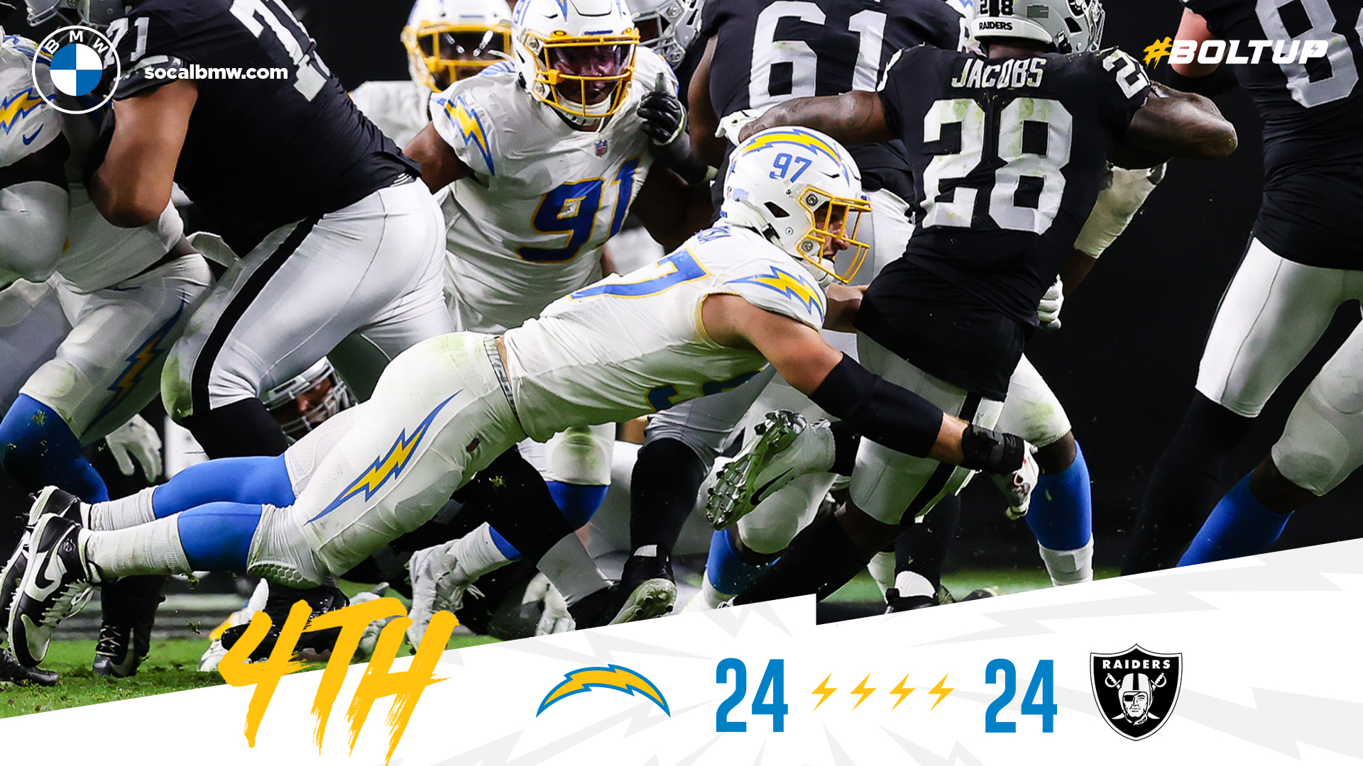 And that was your first half — the Chargers went to the locker room after 30 minutes leading the Raiders, 17-10.