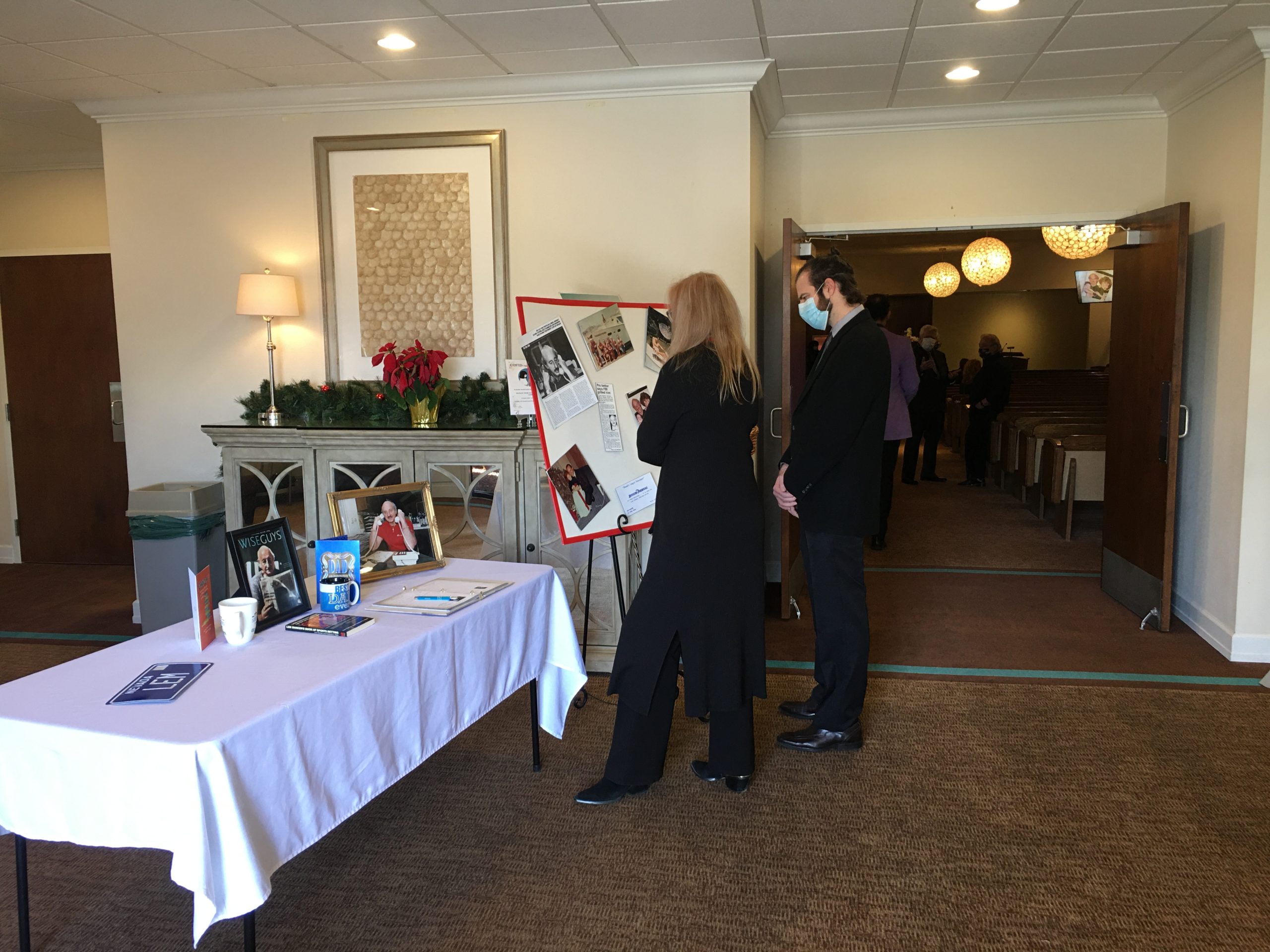 Maathuis shared this photo of funeral attendees reading about Banker and looking at photos.