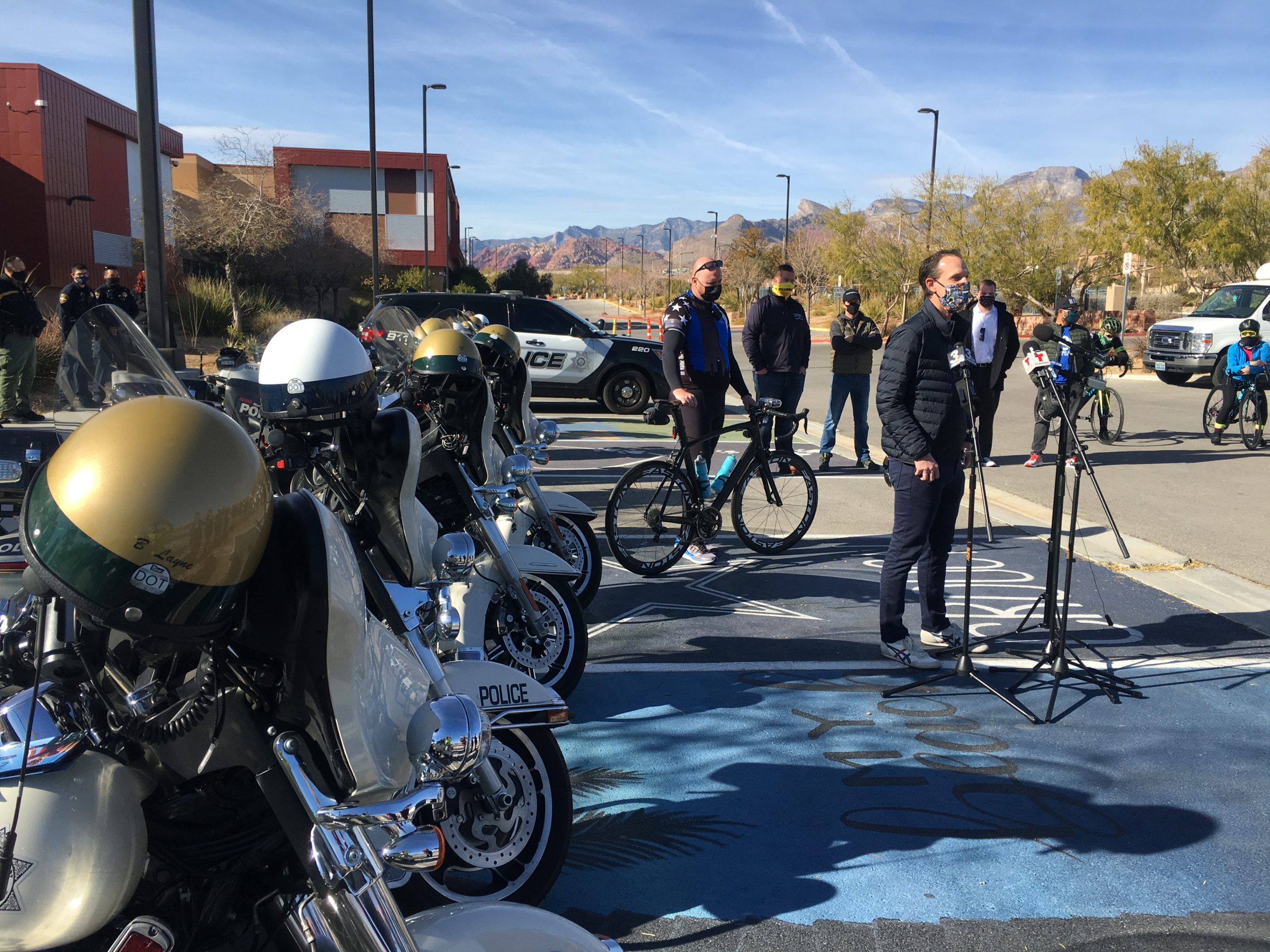 Joining Bennett was Clark County Commissioner Justin Jones, who is also concerned about bicyclists and pedestrians being struck by motorists. Jones also spoke this morning at about 11 a.m.