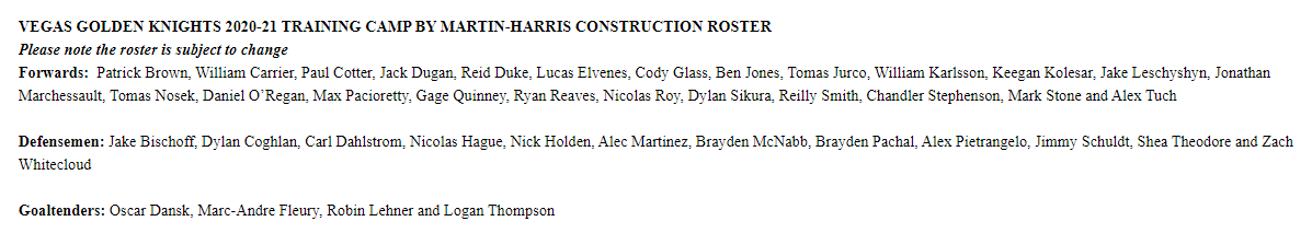 The Knights training camp even has a presenting sponsor — Martin-Harris Construction. With no fans at games and all that lost revenue, the Golden Knights do have income from their many sponsors.