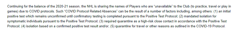 How does Pietrangelo or any NHL player get on the COVID list? It’s spelled out in this statement on the NHL media site: