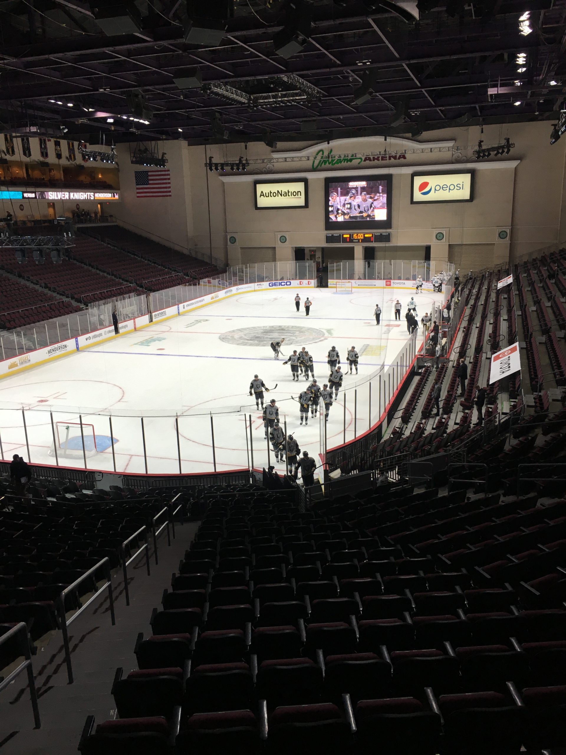 Both teams left the ice before the start of the third period with the Silver Knights leading, 1-0, after two periods.