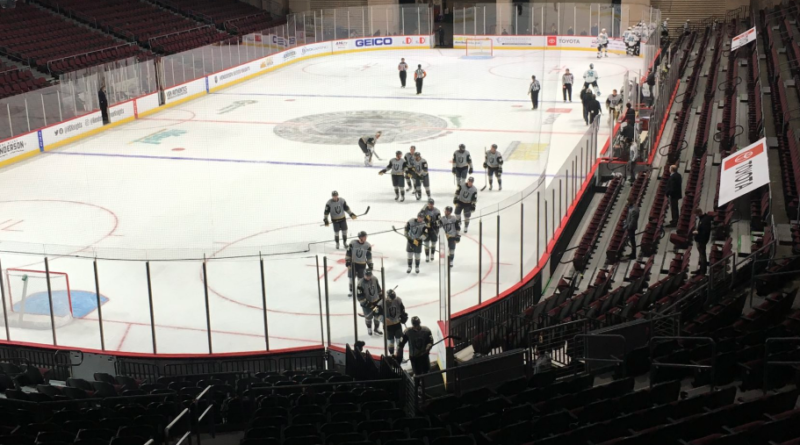 There are no fans at Orleans Arena, the temporary home of the Henderson Silver Knights. The Silver Knights are the AHL affiliate of the Vegas Golden Knights, which bought the former San Antonio franchise and re-branded the club into the Silver Knights.