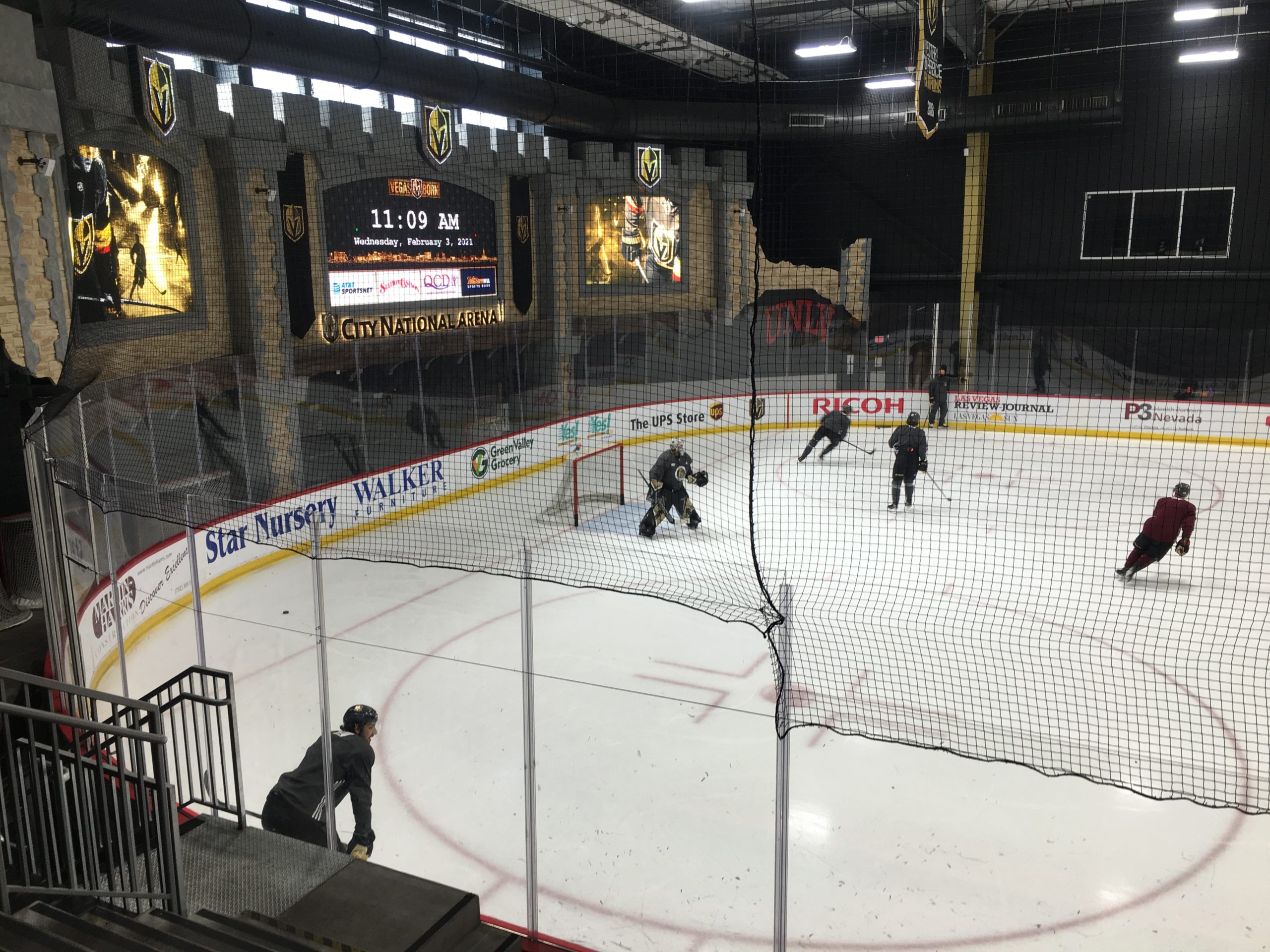 After three Vegas Golden Knights coaches, VGK defenseman Alex Pietrangelo and a Knights taxi squad player were in COVID protocol as three VGK games were postponed in seven days, the Golden Knights players hit the ice for practice at the City National Arena training center in Summerlin Wednesday.
