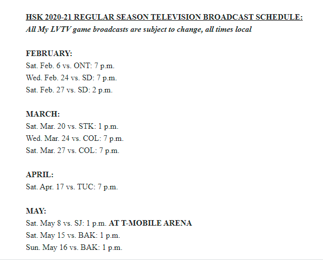 In Henderson Silver Knights news, the local TV broadcast schedule was unveiled: