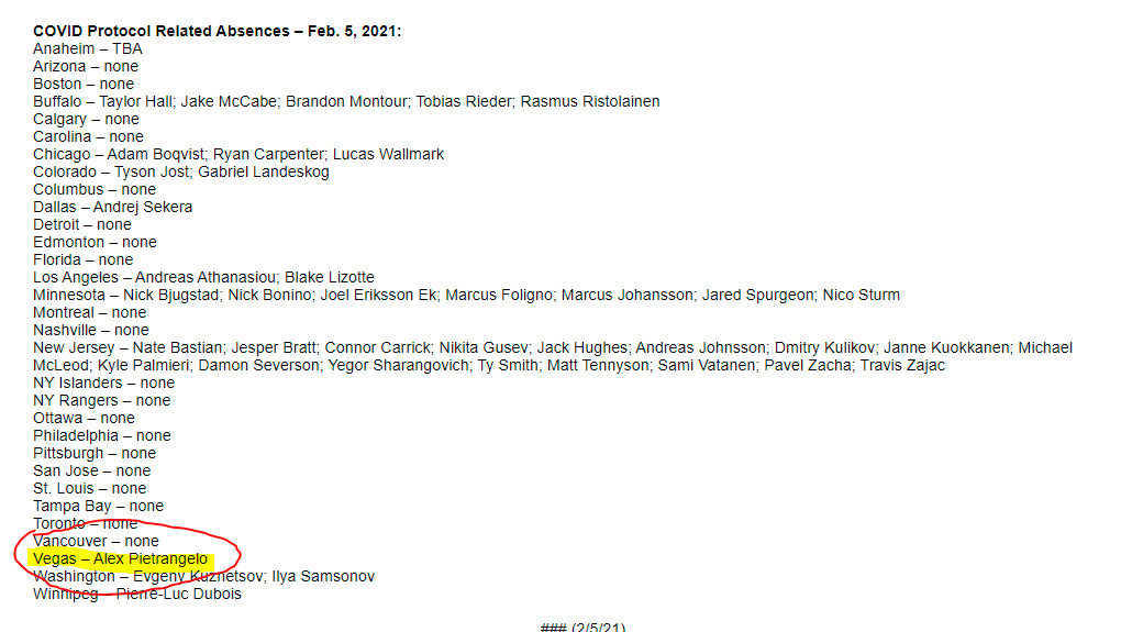 Here’s today’s NHL COVID list: