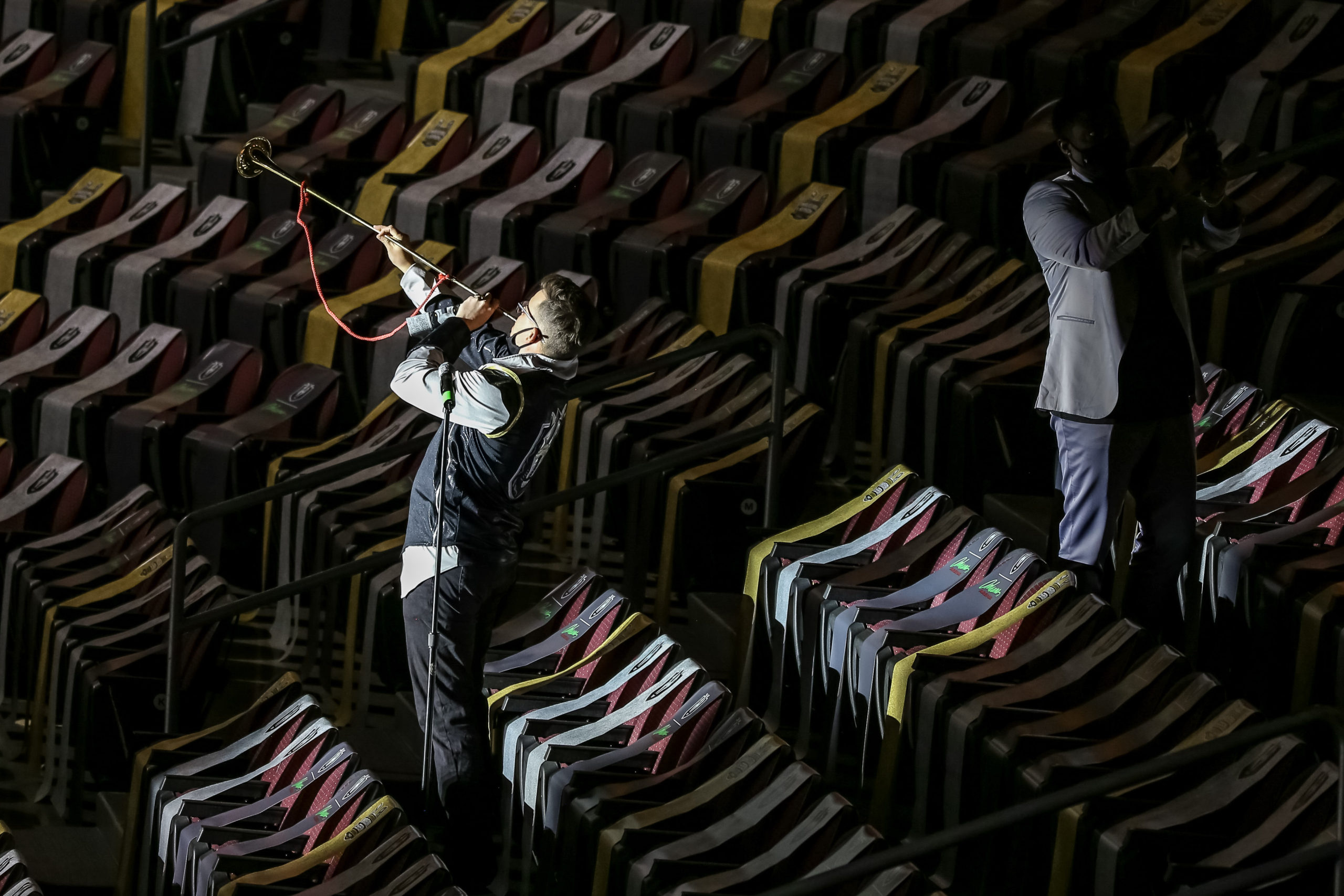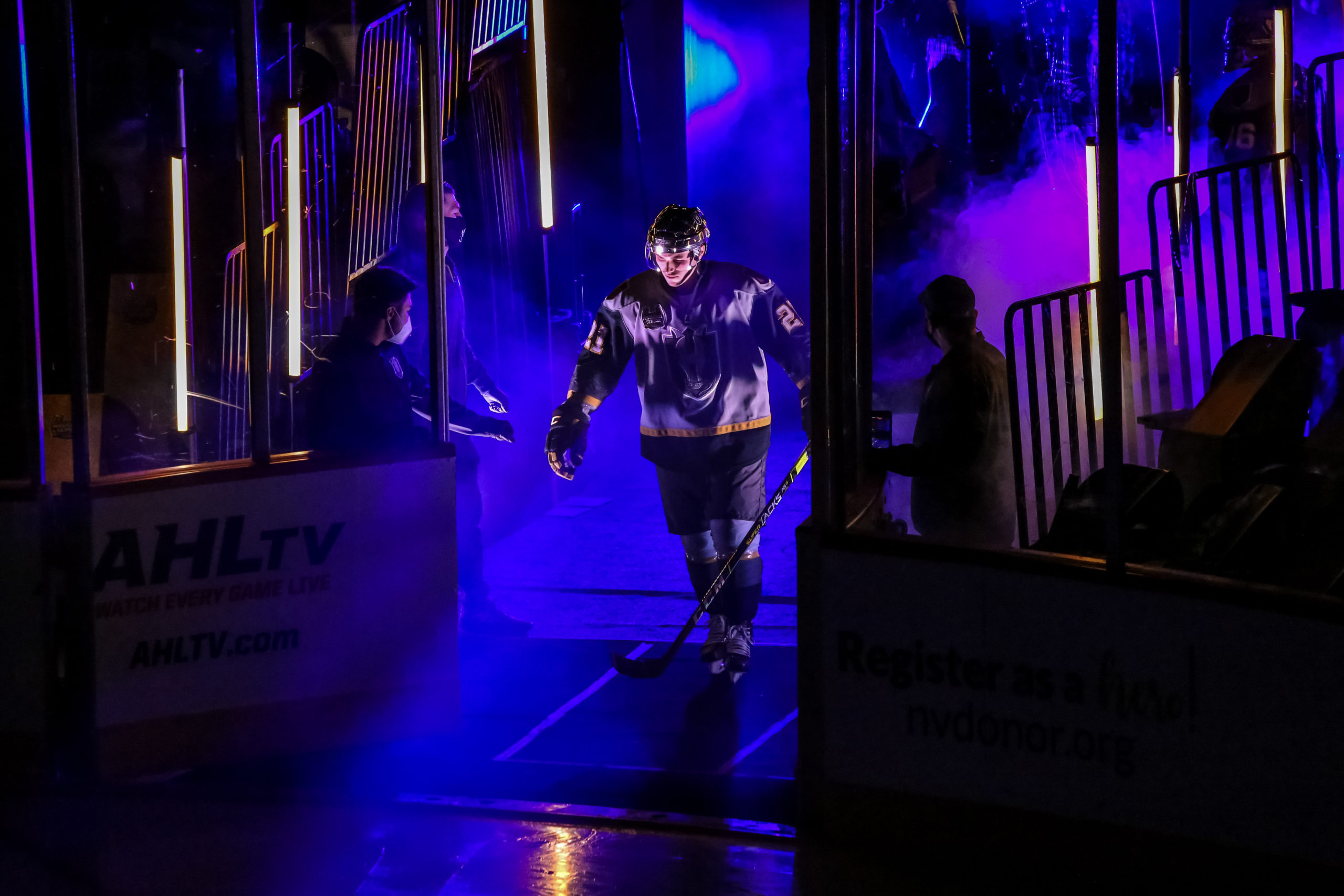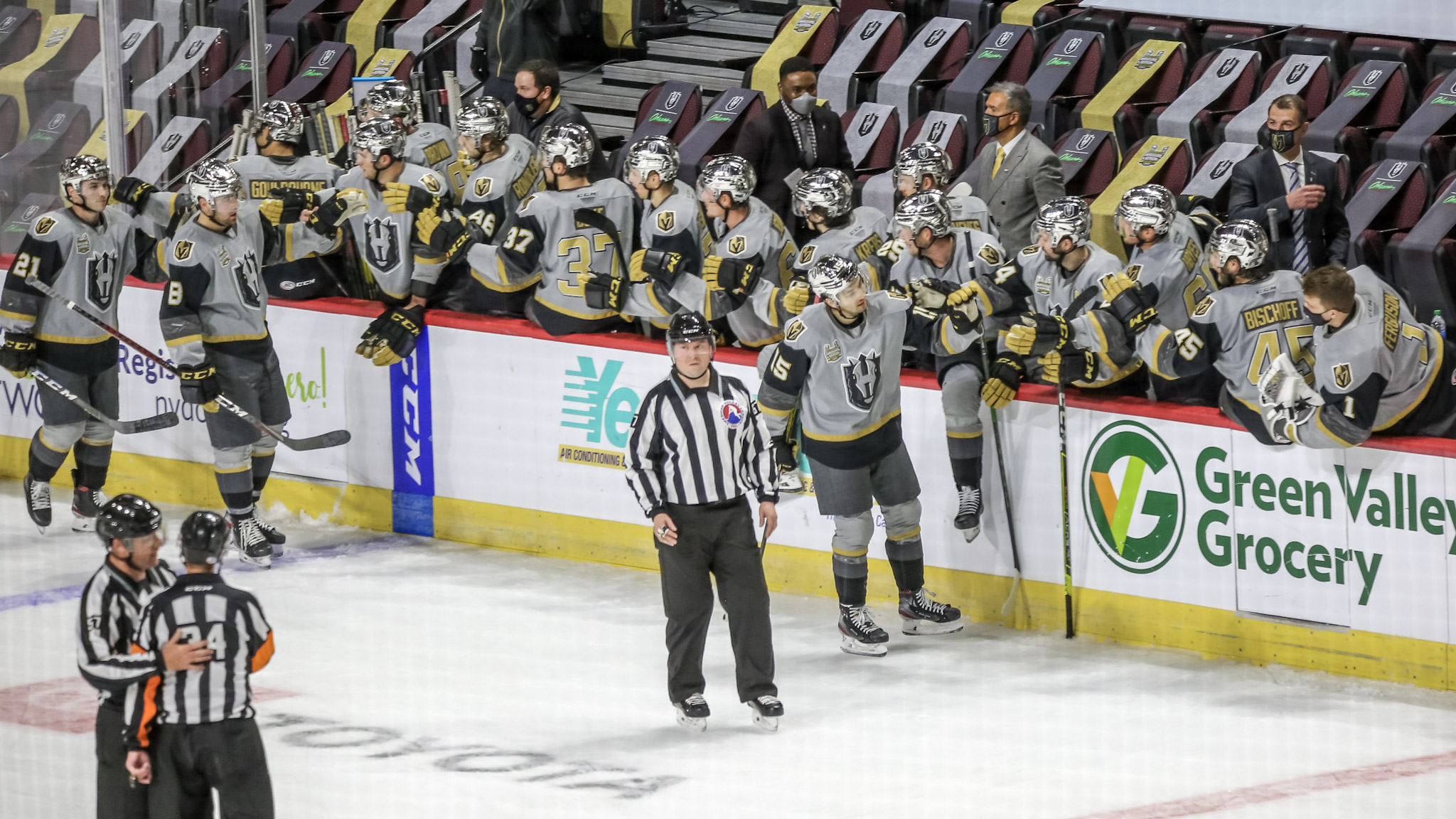 While there are no fans watching in the building here at Orleans Arena, there are TV viewers catching the action on LVTV. Henderson Silver Knights play-by-play voice Brian McCormack will handle play-by-play duties while Vegas Golden Knights analyst Mike McKenna will handle the primary color analyst duties. McCormack will be the Silver Knights radio voice, too.