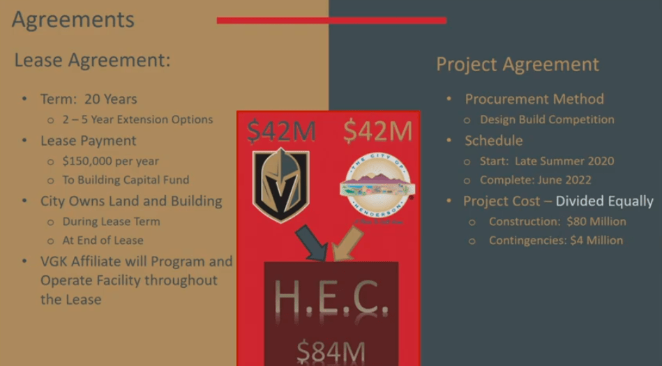 While the NHL Golden Knights play in a privately-built venue, T-Mobile Arena, the American Hockey League Silver Knights will play in a publicly-subsidized $84 million-dollar arena in the city of Henderson, which is footing $42 million for half of the costs. The 6,000-seat Silver Knights arena is being built out of the old Henderson Pavilion, which will be used for city events, too.