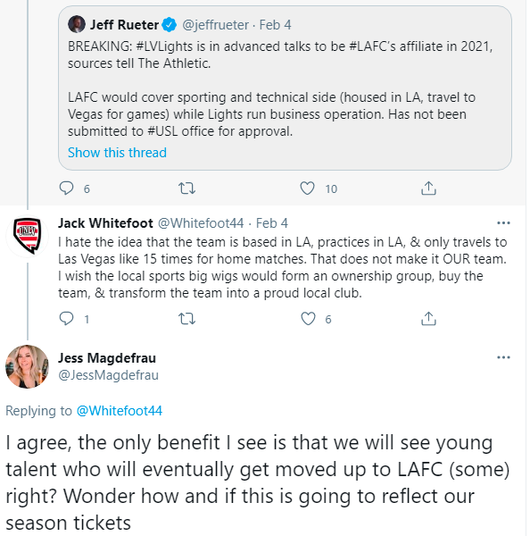 Here was the Tweet from last week about talks that the Lights would be an LAFC affiliate.