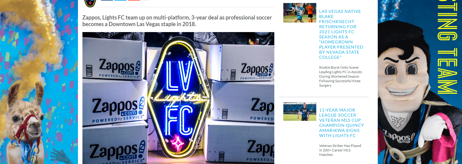 Our former sponsorship with the Las Vegas Lights was centered around in-person, community focused events such as tailgates and live games. Due to COVID-19, sponsorships have understandably gone towards more digital deliverables resulting in the Lights and Zappos mutually deciding to part ways on amicable terms. We were humbled to be able to support the team for their first three years, and look forward to another community sponsor having the opportunity for the presenting title. — Zappos statement