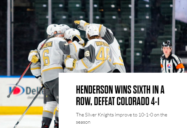 And the Henderson Silver Knights have the best winning percentage in the American Hockey League at 10-1.