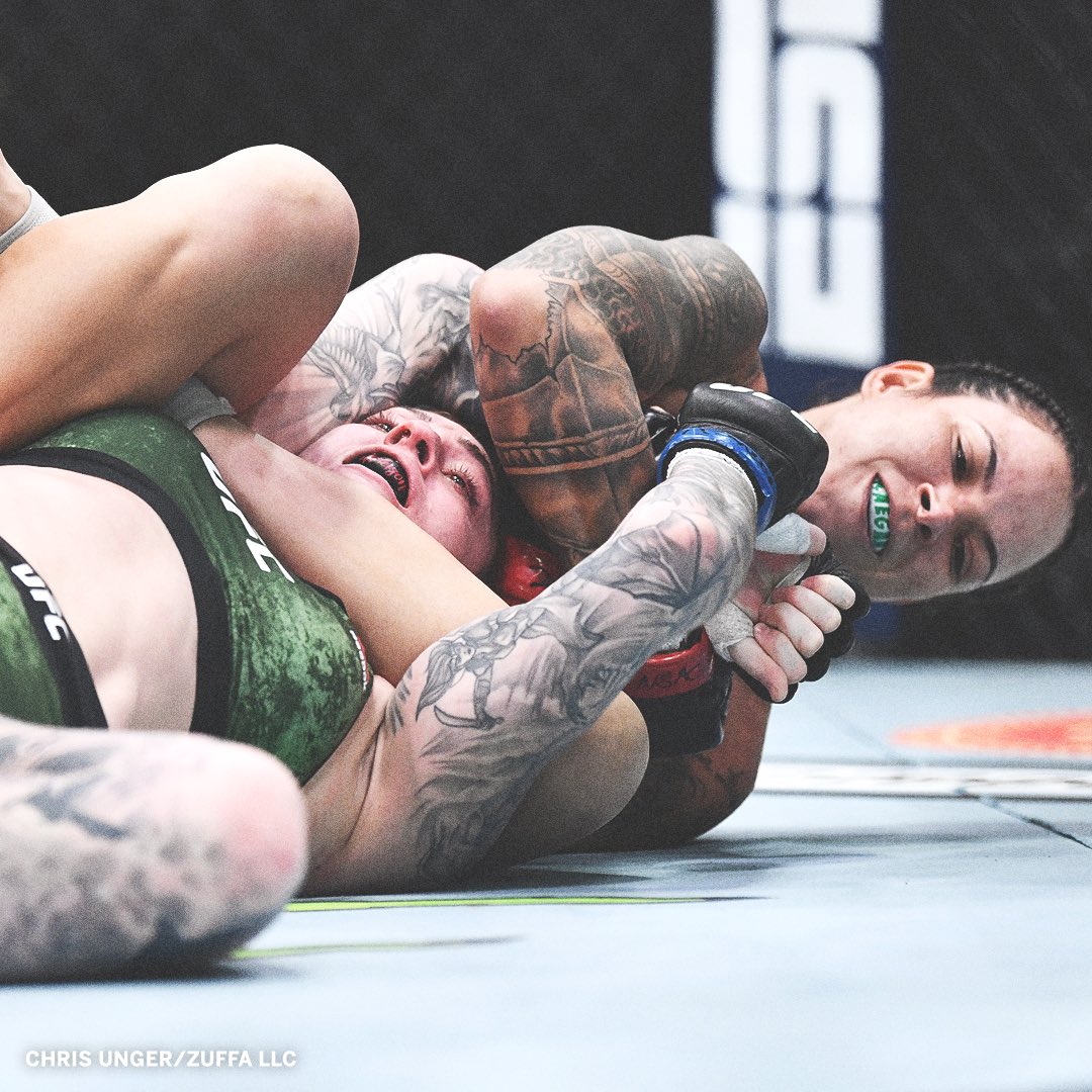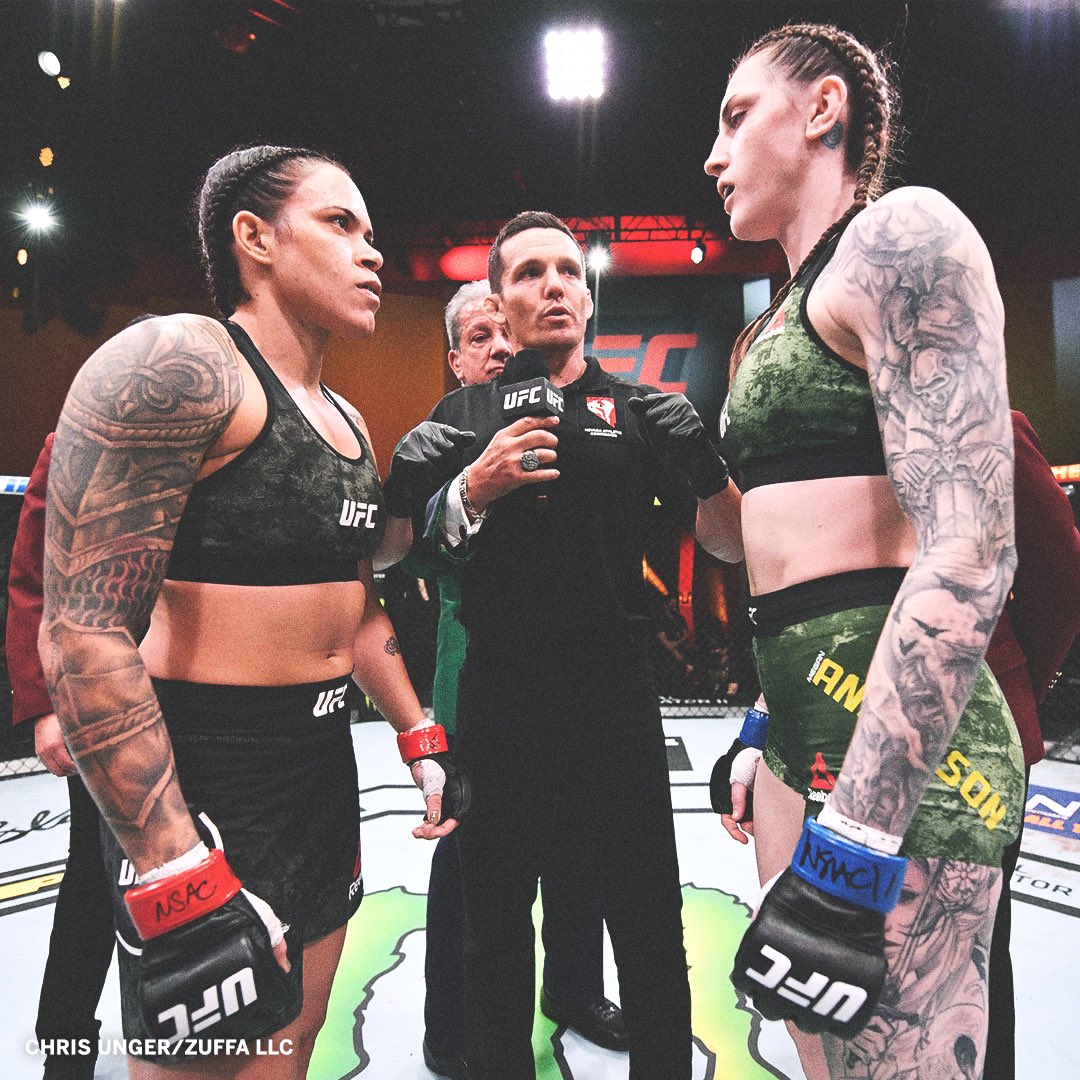 It took just 2:03 of the first round for her to connect on a flurry of heavy right hands and then submit six-foot tall, athletic Megan Anderson, who never posed any threat whatsoever in the fight.