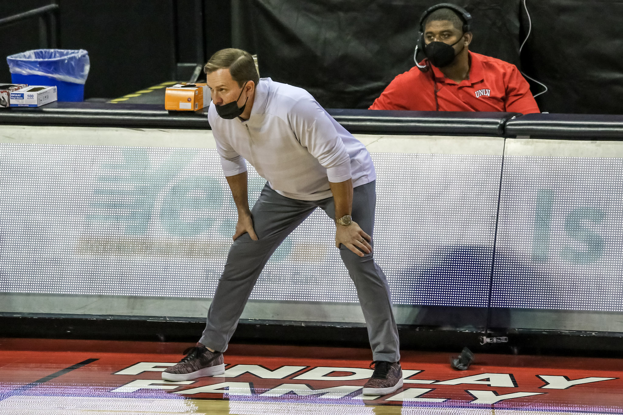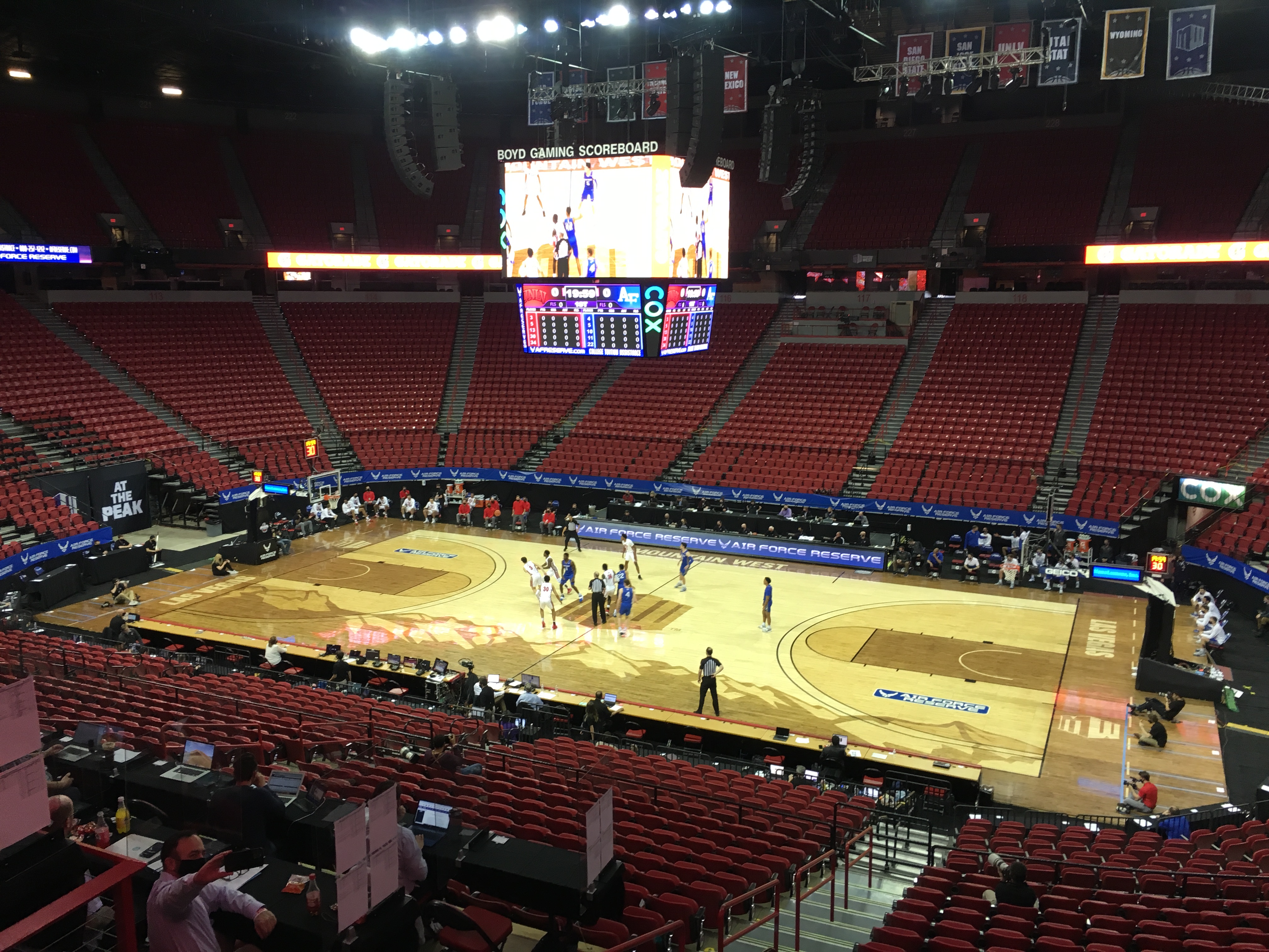 There were no public fans, though the Thomas & Mack usher guarding the media in sections 104 and 105 yelled out cheers and advice to the UNLV players like advising them when to shoot the basketball.