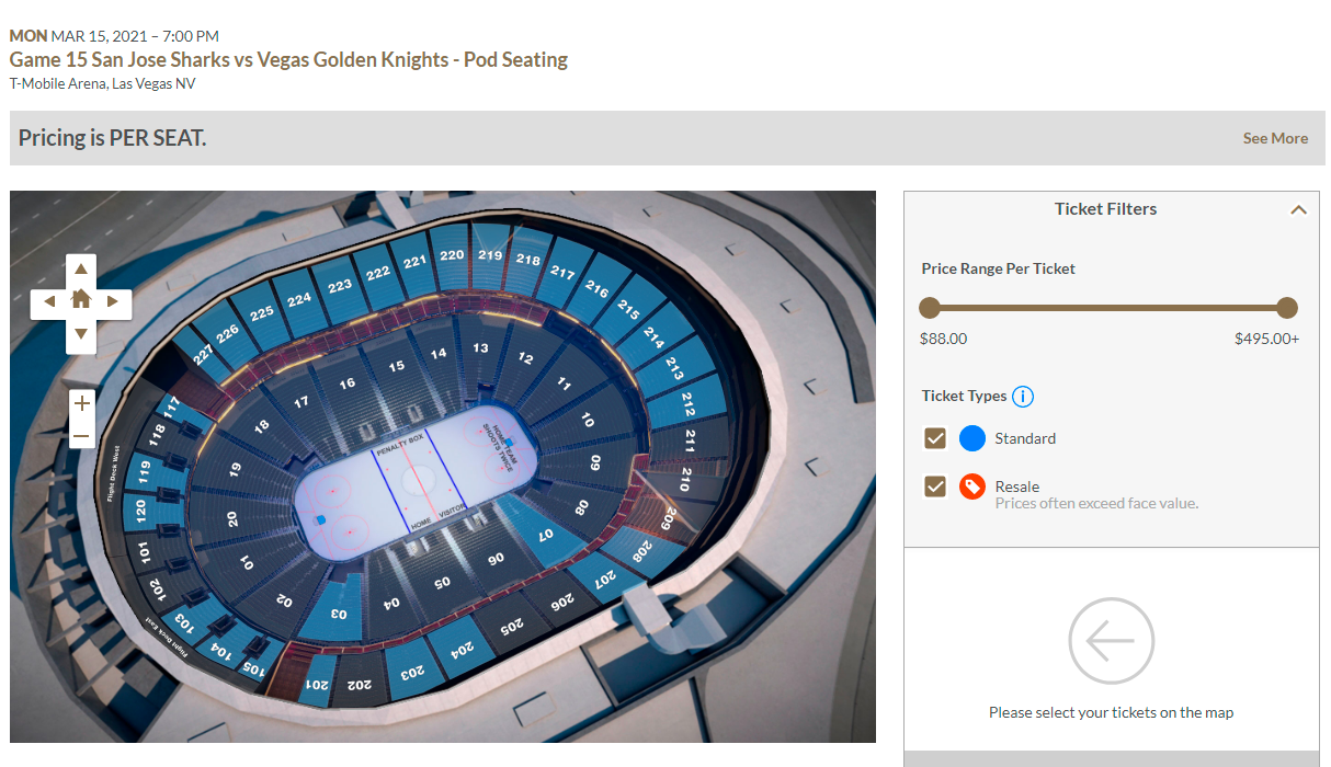 Going to 20 percent capacity from 15 percent capacity means 868 more fans in the Big Ice House by the Strip. A quick look at the Golden Knights ticket prices for Monday’s VGK vs San Jose Sharks game shows tickets selling from $88 to $495.