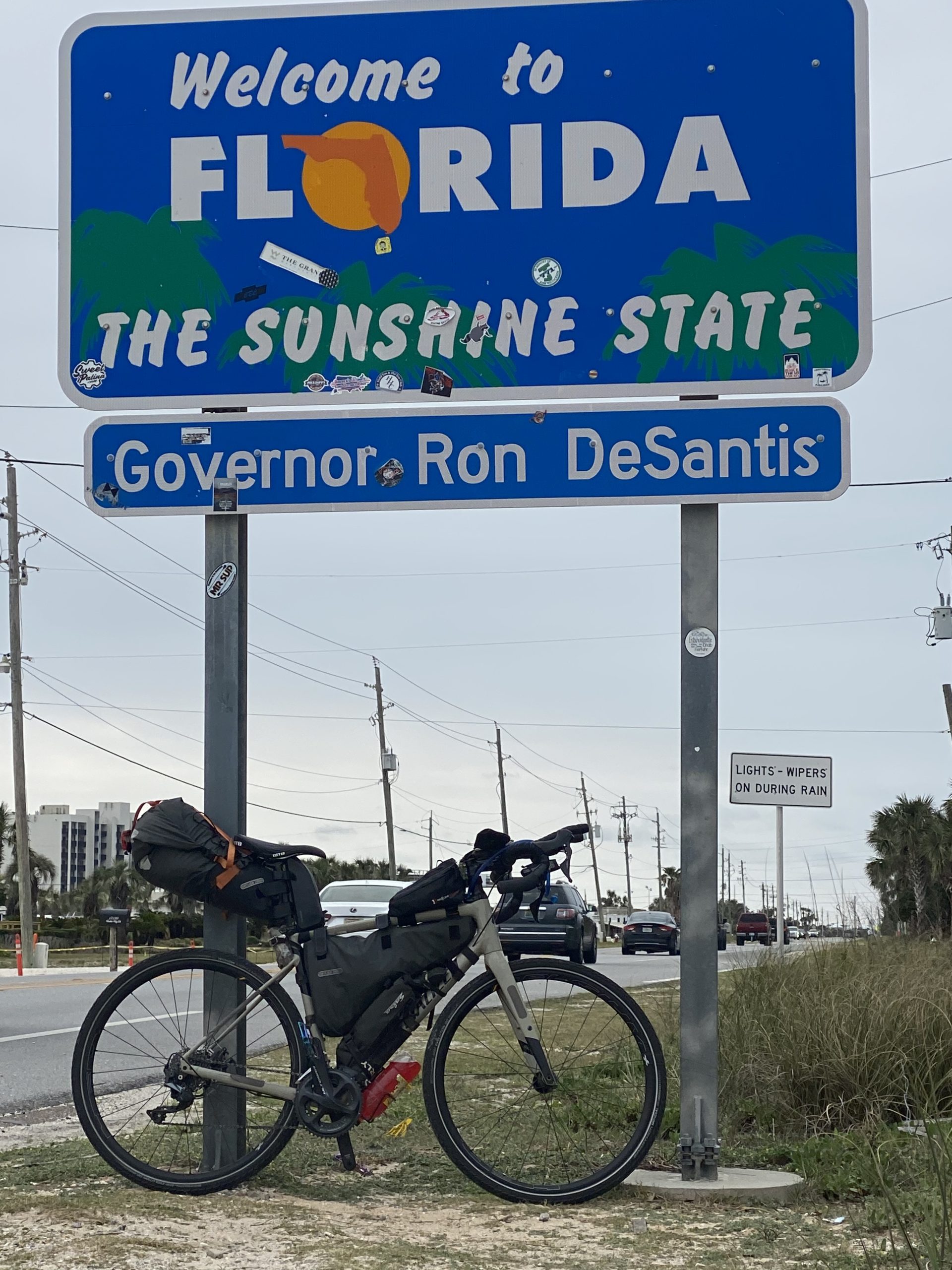 This was not the hardest day for me but I didn’t want to drain the fuel tank and have nothing left at the Atlantic Ocean I didn’t quite make it yet but I can smell the Atlantic. More importantly Heather and Sequoia are on the plane right now flying to Jacksonville and will arrive before me at the Atlantic ocean tomorrow At Saint Augustine. Yeah that’s gonna be pretty rad.