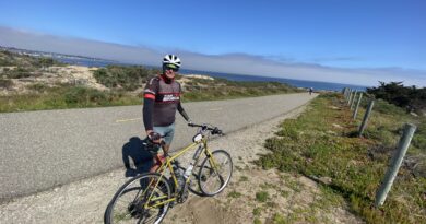 Fisher’s bike mechanic skills also came in handy when some front wheel spokes snapped and he had to fix a gear-shifting cable that broke inside the bike part that changes the chain to different gears. He chatted with one of his bike store mechanics to figure out the details of installing a new gear-shifting cable in the bike part, which he took apart and then re-assembled with the new cable inside.
