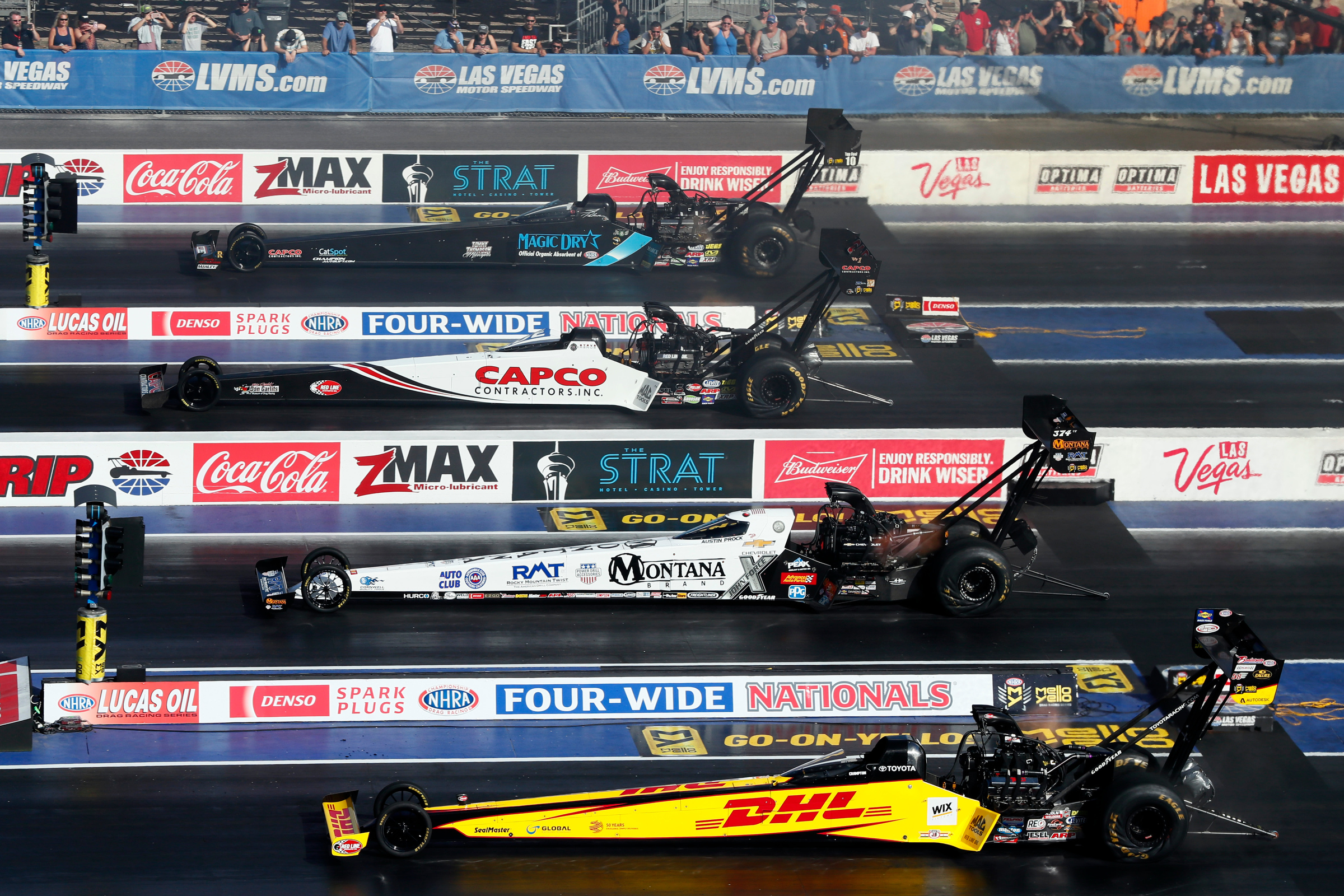 After officials limited Las Vegas Motor Speedway to 15 percent attendance capacity (12,500 fans) for a NASCAR weekend earlier this month, local and state officials gave the green light to the Speedway to have 50 percent capacity for the April 16-18 Denso Spark Plugs NHRA Four-wide Nationals at The Strip at the Speedway.