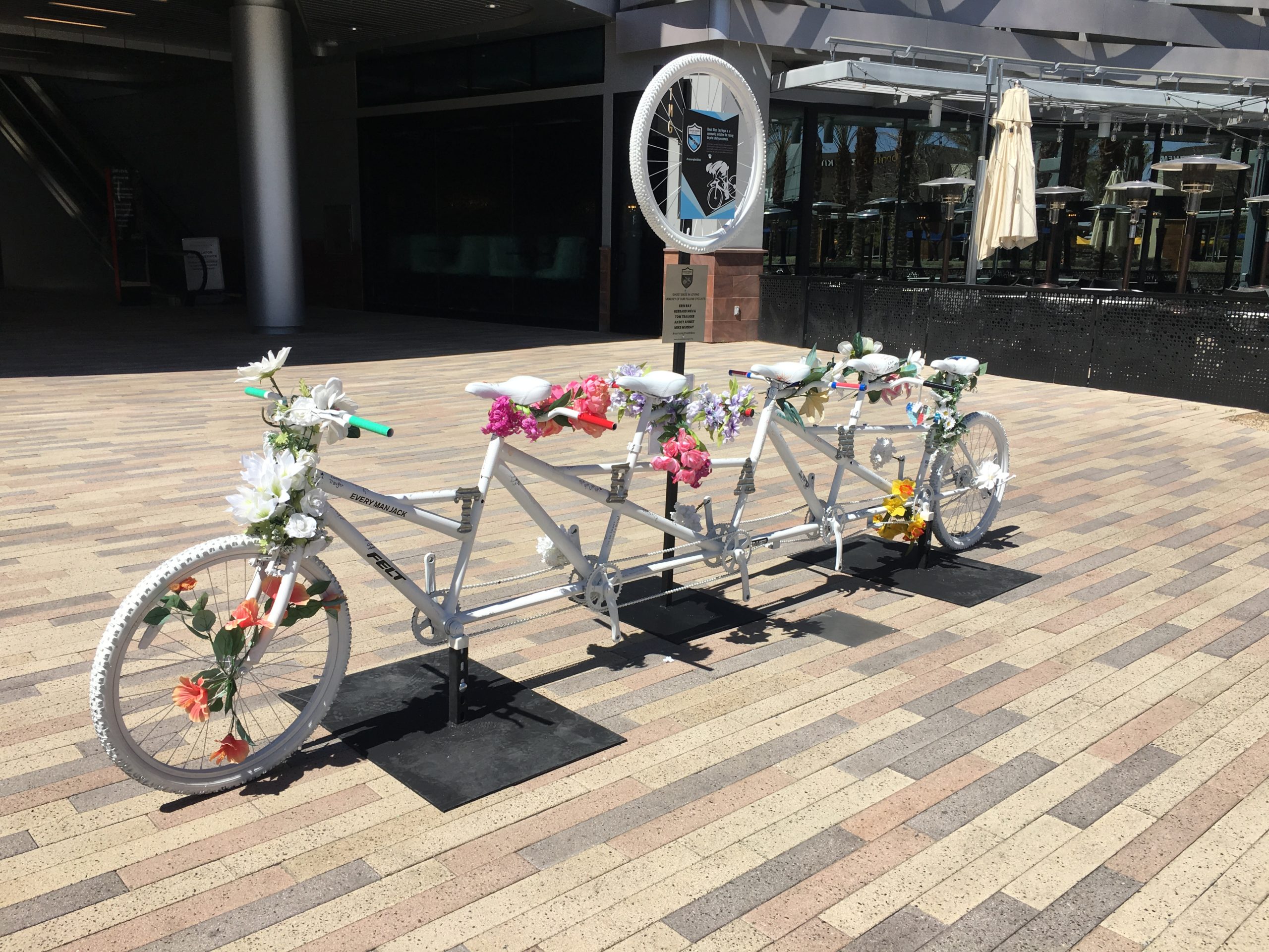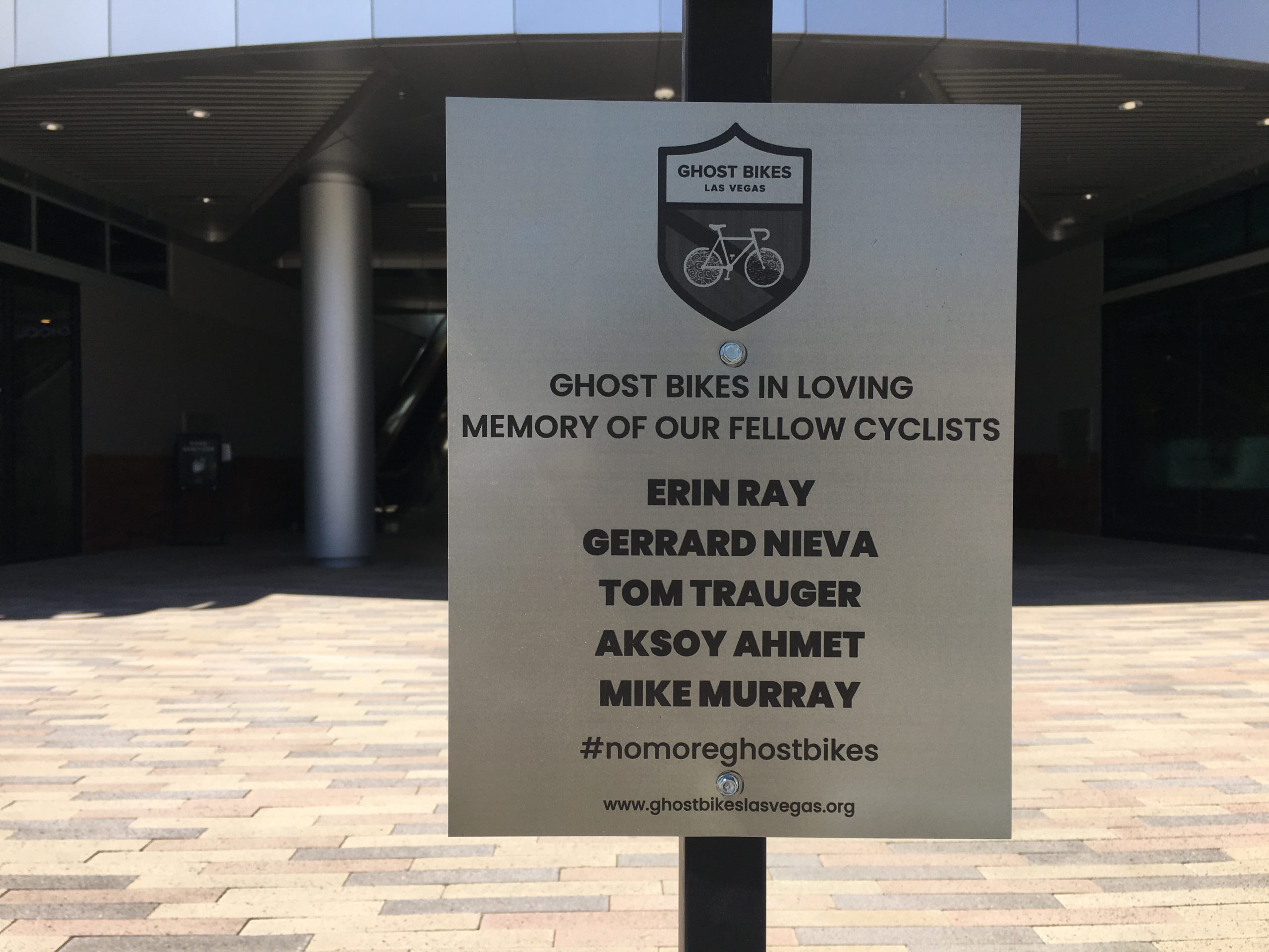 “We agreed that placing it (the ghost bike) in their public space would raise its visibility and impact,” Treichel told LVSportsBiz.com Friday. “In addition to our goal of #nomoreghostbikes, we will continue to work towards no more roadway fatalities. Slow down and never drive angry, impaired or distracted.”
