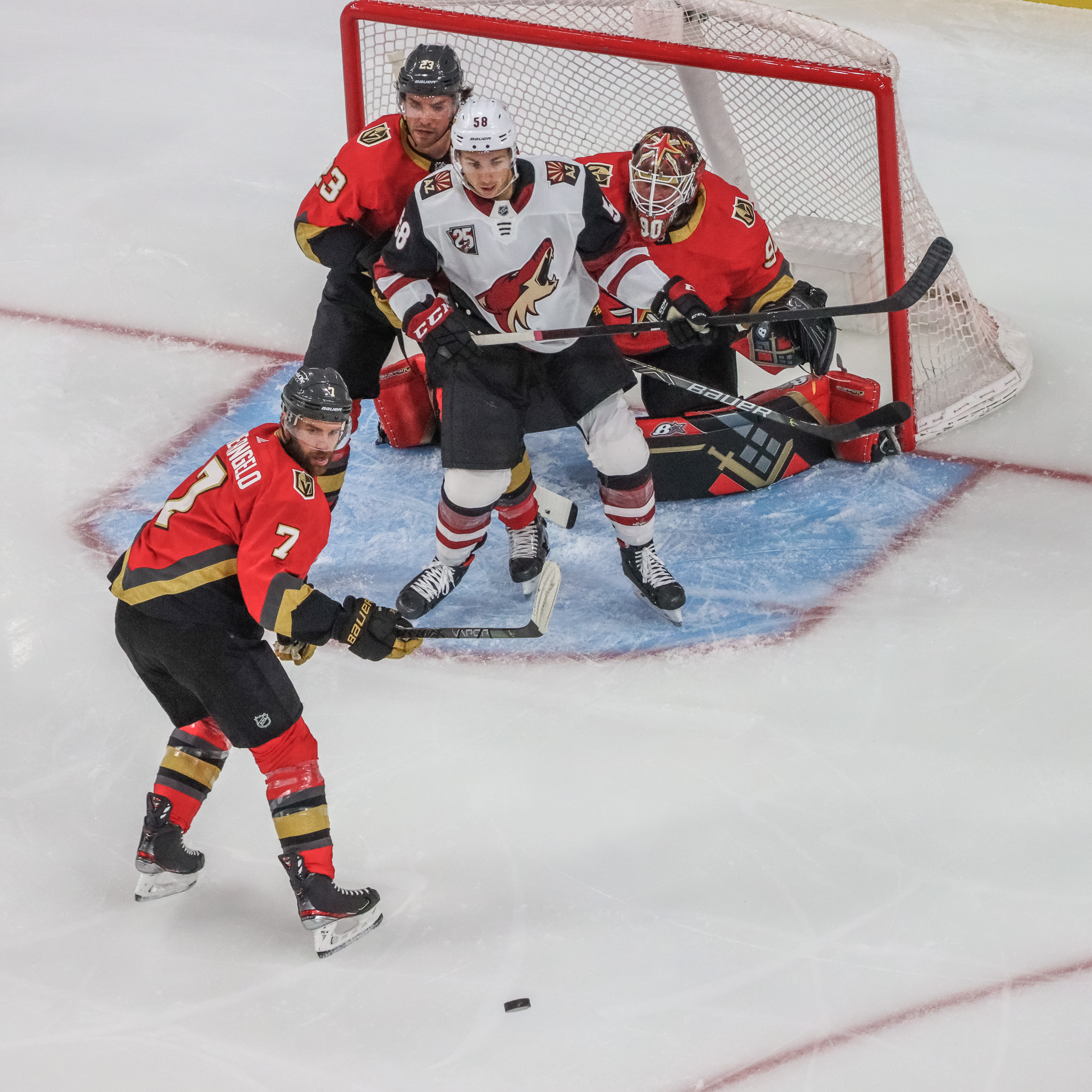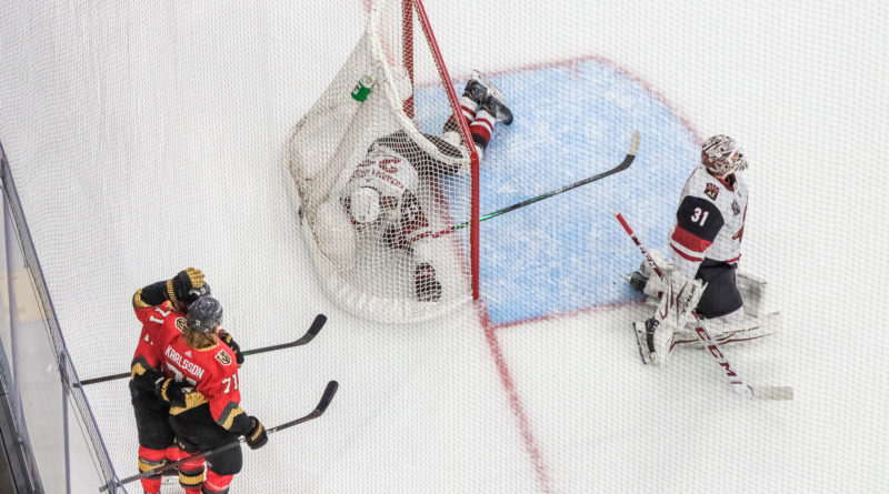 The Coyotes scored in the final minute in the middle stanza on a power play to get on the scoreboard. The Knights still had a four-goal cushion, 5-1, after two periods.