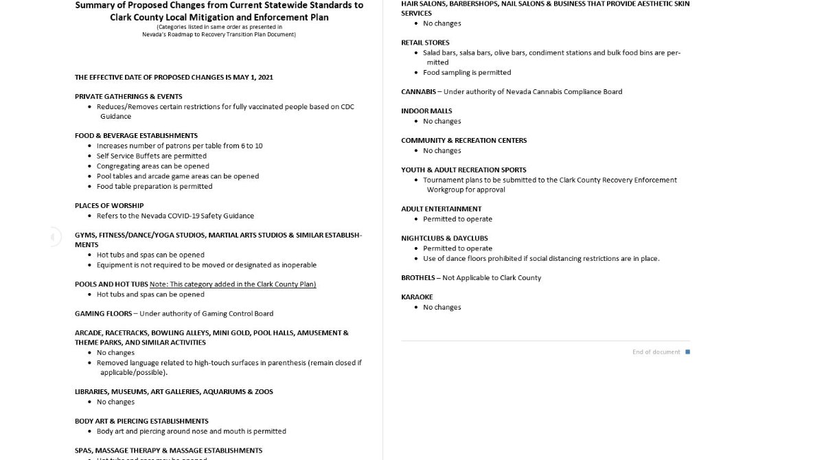“After extensive conversations with state health officials, and with the goal to reopen to 100 percent capacity across Nevada by June 1, we will remove the statewide required social distancing mandate as of May 1,” Sisolak said.