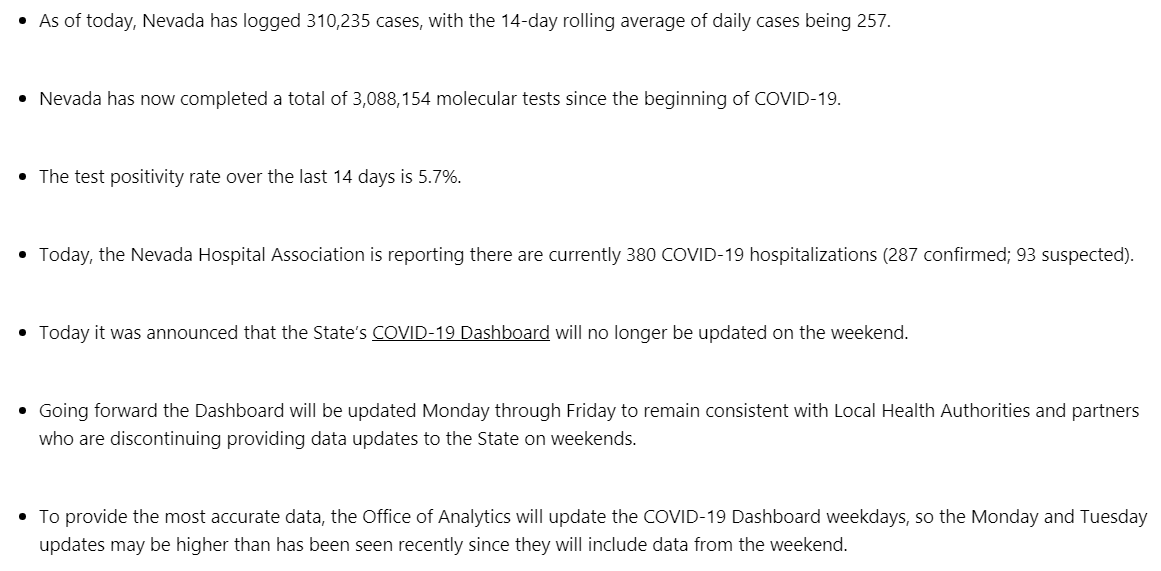 Friday’s COVID-19 numbers for the state of Nevada: