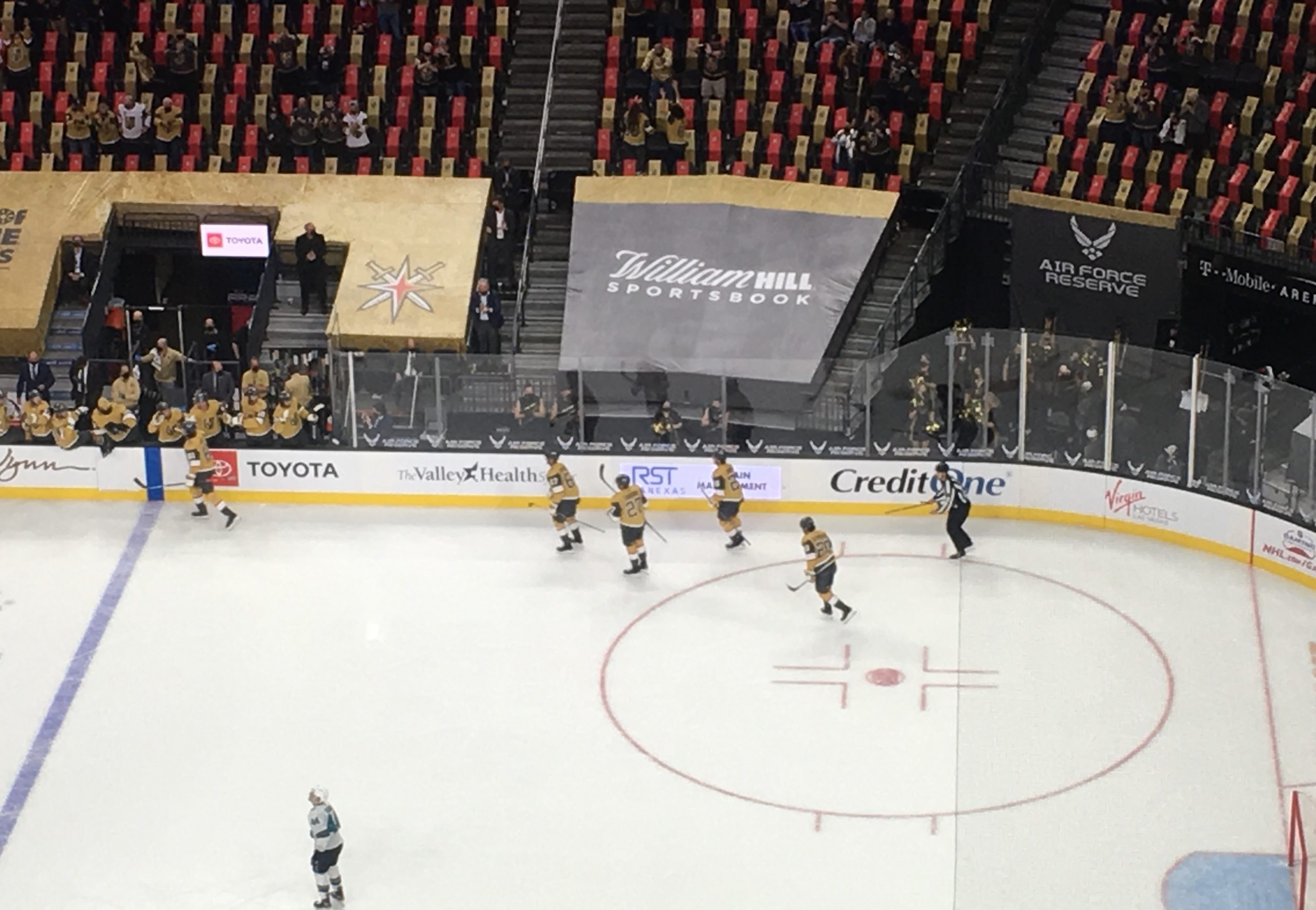 In period two, another San Jose nemesis for the Golden Knights — Tomas Hertl — scored at 11:07. He blasted in a goal off a rebound and the Sharks led, 2-1.