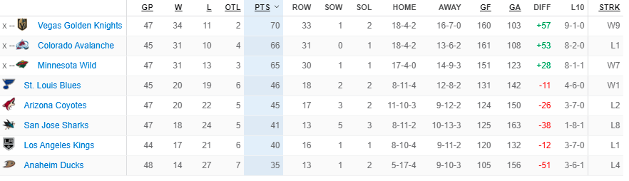 The Knights, Avalanche and Minnesota Wild have all clinched playoff berths.