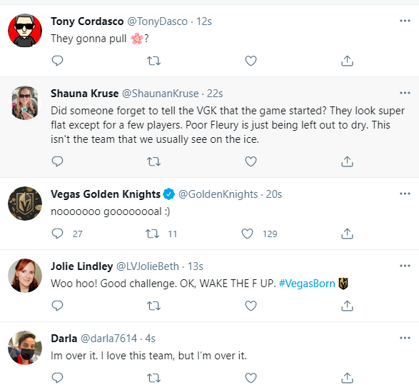 Knights fans were not impressed with Vegas’ play in period one.